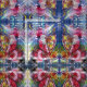 Färgfull, vit och konstnärlig akrylmålning ,Tomten spelar harp i månljuset, uggla, blommigt, prydnadsföremål, vinterväxter, barn leksaker, hullbär i ljust rött,grönt,vitt,gult färg. av Bulgan Lumini (c)