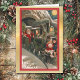 På framsidan av detta Julhälsningar kort finns en vintage bra konst av Jultomten som kör ett tåg genom en tunnel med två barn som passagerare och en fullt i himmel. Bilden placeras på en ljusinfunderad övertoningsbakgrund i guld och kantas i rött med en tunn linje i guld. Insidan av kortet har bakgrunden guld till lämnad och den andra sidan är vit och delvis lämnat tom för ditt eget meddelande, med anpassningsbar text fält för din namnteckning i grund. Fira julen på det gamla sättet med det här vackra kortet som visar en bild från borta dagar.