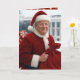 Trumman klädd som Jultomten håller ett rödsäck fyllt med gåvor och står framför Vita huset i en snösituation. Text kan ändras.