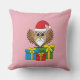 En illustration av ett sött Jultomten uggla med rött tomhatt och grönt, rött, blått presenter med gult band. Denna vackra, storögda fågel med långt skägg och mustasch är redot att fira hans magiska jul. Vad sägs om dig? Är redot med gåvor?