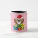 En illustration av ett sött Jultomten uggla med rött tomhatt och grönt, rött, blått presenter med gult band. Denna vackra, storögda fågel med långt skägg och mustasch är redot att fira hans magiska jul. Vad sägs om dig? Är redot med gåvor?