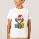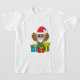En illustration av ett sött Jultomten uggla med rött tomhatt och grönt, rött, blått presenter med gult band. Denna vackra, storögda fågel med långt skägg och mustasch är redot att fira hans magiska jul. Vad sägs om dig? Är redot med gåvor?