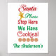 Tomten, stanna här vi har kakor, är en förtjusande poster som du kan ram och hänga upp på julen. Anpassa detta med dina familjers efternamn.