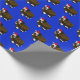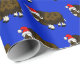 En teckning av en gullig tecknadmuskoxe som ha på sig en jultomtenhatt.