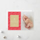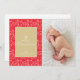 Det här julkortet har en röd och vit elegant gnistra och snurrar mönster i bakgrunden och en guld-låda med ord "God jul" i en vit typografi under en vit snöflinga framtill. Anpassa det här fotokortet med hälsning och fotot. Grafik ©Sonya DeHart.
