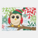 En gullig juluggla perches lite på en gren som omges av snöflingor.