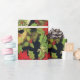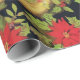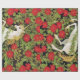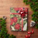 Målning av jul Unicorn med röda poinsettia-blommor och grönt lämnar på mörkens bakgrund.