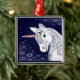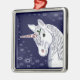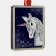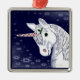 Sportar för detta unicornhuvud den röd och för vitcandy canefärg hornen och järnek i den är manen. Den har omgivit av snöflingor som faller mot en natthimmel. Blandad massmediaillustration vid T.A.Paxton