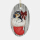 På framsidan av denna Helgdag är en bild av en liten Cavalier Kung Charles Spanska valp som hänger i en röd julklapp. Bilden placeras på en vit grått-träbakgrund, och det finns en röd och svart buffel-tryckbög bredvid den. Baksidan av dekorementet har samma bakgrund med din egen anpassningsbar. Cute för vem som helst!