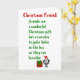 Ett lustigt God jul-kort för en vän, med dålig dikt och illustration, om att skapar dig att ge vänner en säker lösning. Vår karaktär, tillie, leker, bär en julhatt och står bredvid en stor röd låda med ett grönt band.