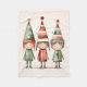 Tre vackra julklappar klädda i festlig grönt och röda kläder, var och en med unika höga hattar som dekoreras med stjärnor, rand och vinterkr mönster. Deras söta och minimalistiska stil fångar helgdag på ett härligt sätt.