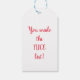 Märkrn på julklappar har en snygg fläkt på framsidan med ord, "God jul!" nedan. Två linjer visas nedan för att skriva vem presenten är till och från. Baksidan har ord, "Du har gjort NICE-listan!" Elvar är klädda i grönt, ord är i rött. Designad att samordna med julklappen.