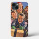 Vintageillustration Glad jul semesterbild med en familj som har jättekul och åker släde ner för berget i snön och leker på juldagen. Farfar sitter i mitten av släden med en stor leende, flankerad av mamma, pappa och barnen. Mamman vinkar, pappan ler och barnen skrattar med sin farfar på deras släde.