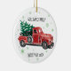 Julvintagelastbil med snöflingorefternamn julgransprydnad keramik