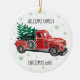 Denna prydnad presenterar en röd pickup lastbil för klassiker med en ny julgran i baksidaen på en vitbakgrund och gröntsnöflingor som omkring strilas. Baksida har en stor grön snowflake. Personifiera efternamn med ditt eget, och "kan julen 20xx" uppdateras till strömåret.