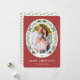 Det här julkortet visar en ovalfoto med vinter-gröna och röda helgdag. Anpassa det här helgdag för modern elegant genom att lägga till ditt foto och din familj namn.