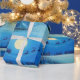 Vinterskena av kalk, mörk och ljusblått med renar, en blek sol, juldekoration med guld Geometric Marry jul-Party dekanor