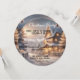snöscen med ett hus och träd i förgrunden, en fantasi-konst, snövintern julnatt