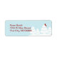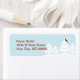 Returetiketterna i elegant och söt vinter har en snövit träd-scen med en skarp röd kardinal på akvafblått.