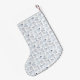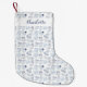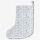 Vit bakgrund med ett blått mönster av stickade handskar, strumpor och mössor. Personalisera och lägg till ett namn.