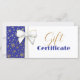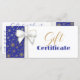 Utformningen av lyxen och riken helgdag med fantastiska julklappar och gyllene snöflingor mönster med blå bakgrund. Det här festliga presentcertifikatet är perfekt för ditt småföretag eller för presentvänner och familj.