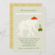 Julvit elefantfest inbjudan med en lekfull, handritad illustration i en chic vit på krämfärgad färgskala med roliga röda och gröna inslag. Originalkonst och design av Annie Montgomery Design.