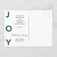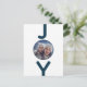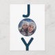 Ett enkelt minimalistiskt julkort i trendig i blått och vitt. På framsidan: En chic vit bakgrund, med ord JOY skriven med rött fet brev. Brev O används som foto på ram. Anpassa och lägga till ett eget familjefoto. Bakåt: Vit bakgrund och blå text. Lägg till dina egna semesterhälsningar och namn i familjen. Brev i ord JOY som dekoration.