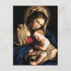 Detta är en vacker bild av Madonna och Kristus Child under 1600-talet. Mary är klädd i blått, rött och guld färgad och sitter med ögon stängd och håller en sovande baby Jesus i hennes arm. Detta rörande Madonna och barnkortet är perfekt till jul- och Mor-dagen.