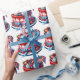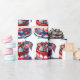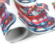 A Colorful July 4th Fruit Cake Designed In Red White And Blue Colors with An American Flag Wrapping Paper