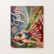 July Retro Pin-Up Girl Jigsaw Puzzle, Vintage 4th of July Picnic Art, Patriotic Fireworks Puzzle
