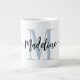 Elegant, det moderna stora kaffet mugg med ditt eget namn och monogram i en handskriven kalligrafi i ett minimalistiskt dammigt ljusblått och svart, denna stora typografidrivna design ger en underbar gåva till medarbetare, lärare, tränare, flickvänner, pojkvänner, fruar, döttrar eller någon annan arbets- eller familjemedlem! Underbaren för kontoret eller hemdekoren som den här XL Jumbo mugg storlekssorterar efter toppen gör en roligt, snyggt närvarande för vilken födelsedag eller uppskattningstack som helst!