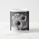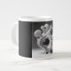 Denna 20 oz Jumbo-mugg är extra stor och är perfekt för kaffe, flingor, glass, soppa och chili. Den kommer i en svart-vit abstrakt design som är en kombination av korall och snäckskal.
