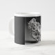 Denna 20 oz Jumbo-mugg är extra stor och är perfekt för kaffe, flingor, glass, soppa och chili. Den kommer i en svart-vit abstrakt design som är en kombination av korall och snigelskal.