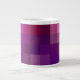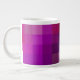 En snyggt av jumboliknande kaffe eller Kopp för Soppa med en abstrakt mönster av rosa, blått och lila fyrkanter, från en digital design av Judy Adamson.