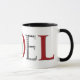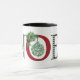 Få på dig din hett choklad eller kaffe med det här stora 15 oz svarta och vita mugg med ett modernt och trendig svart och vitt Buffalo plaid-kontrollerat mönster på två av brev som stavar NOEL, med två av de andra breven i rött. Brev O har också en grönt som illustrerar en rund julprydnad med ord Peace-programmet inom sig. Det finns också gröna grenar- och gräs-koner med lite löv i en spray överst i brev O.