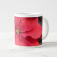 A close-up photo of a lovely poinsettia on a jumbo mug. Enjoy that coffee and tea.