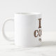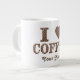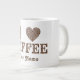 Ett jumbo storlekare mugg med ett "I Heart Coffee" som säger att det är gjort i kaffebönor och ett ställe för att skriva in ditt namn. En gåva som är en perfekt för dig själv eller för vilken kaffedrickare som helst.