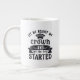 20 oz. (oung) jumbo storlekare mugg har ett "Låt mig justera min Krona och få igång dagen" som står skrivet i svart skrift på ena sidan och en anpassade text fält för en namn på den andra. En gåva som är en perfekt för dig eller för vilken kaffetoppare som helst.