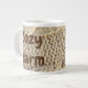 20 oz. (PT) Jumbo storlekare mugg har en "Mysiga varm" som står skriven i chokladbrun skrift över den närliggande bilden av en tunn kabel-sticka-svettare. En gåva som är en perfekt för dig eller för vilken kaffetoppare som helst. Det finns en fält på baksidan som kan anpassas med ett namn.