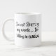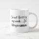 Jumbo Venti-storlekare (20 oz.) specialitet mugg. Klassiskt vitt keramiskt material med bekvämt C-format handtag. Sassy kommenterar gnistor på en groggy dag: "Jag slingrar inte mina ord, jag pratar i kursivt." Ditt kaffe mugg uttrycker allt så att du inte behöver det. (Utformning på båda sidor för höger- eller lämnat handtag). En smart och användbar gåva för den speciellare personen i ditt liv.