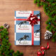 Roligt Equestrian som slår papprare och visar en häst och en riddare som hoppar över sin häst i snö och hälsning God jul.