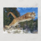 Djurkort som visar ett ogenomträngligt kupp som hoppar i vildmarken. Kumarn (Puma konkolor), som också brukar kallas berget lejont, puma eller catamount, är en stor del av underfamiljen Felinae som bor i Amerika. Dess utbredningsområde, från Kanadas Yukon till Sydamerikas södra Ander, är det underbarare av alla stora landlevande däggdjur av vild på Westerna halvklotet. Kumaren är en utmärkt predator för att be på många olika sätt. Bland de primära livsmedelskällorna finns hov- och klövdjur som hjort, älg, mos och får från bergsområden, liksom nötkreatur, hästar och får från domestic, särskilt i den norra delen av sitt urval. Den kommer också att jaga så små arter som insektra och gnagare. Den här katten föredrar livsmiljöer med tät underborste och klippta områden för stalkning, men kan också leva i öppna områden.