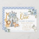 Anpassa den här chicen till djungelns stamdjur Första födelsedag med din egen ordalydelse enkelt och snabbt, tryck bara på anpassningsknappen för att ytterligare ordna om och formatera stil och placera texten. Med vattenfärgade djungeldjur och en söt blå blommigt. Matchande objekt finns i butik! c) Lycklig Cat Studio.