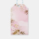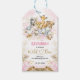 Safari-temed favärde -tagg med feminin tropiska och guld vattenfärgade löv och en grupp söta djungeldjur