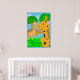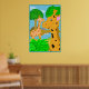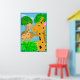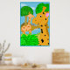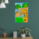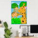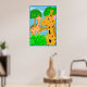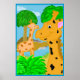 En rolig illustration av två giraffer i en jungelparadis. Det här är en bra affisch för ett barnrum. Bakgrundsfärgen kan anpassas.