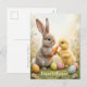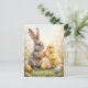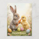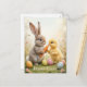 Ett Påsk-kort med hjärtstillestånd och flytande chick sitta tillsammans, som symboliserar vänskap och nystart. Perfekt för barn och djur älskare!