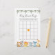 Jungle-djur: Bingo-jaktkortet för babydusch har en vattenfärgsbild av safari/djungeldjur och vattenfärgsgrey eucalyptus garland och elegant handskrivet stil-typsnitt.