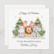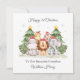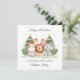 Julkortet är lämpligt för en pojke, flicka eller twillingar på deras första eller andra jul. Utformningen omfattar vattenfärgen snöflingor, julgranar, snö och fem djungeldjur - giraffe, apa, hippo, lejon och elefant, som bär en julhatt.