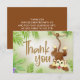 Cute "Tack"-kort för din jungle Spädbarn babydusch. En lycklig-apa simmar från tropiska grenar i regnskogen. På baksidan av detta kort kan du lägga till ett eget meddelande, antingen ett personligt meddelande för varje gäst eller ett enda meddelande som du skickar till alla dina gäster. Om du vill lägga till ett handskrivet meddelande kan du ändra bakgrunden färg på kortet så att det blir lättare att läsa.