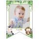 Fyll i baby första födelsedag party med den här fantastisk-könsneutrala flagga för fotomilstolpe/buntning. Med söta vattenfärgsdjungeldjur och grön. Du kan enkelt redigera foton och formuleringar genom att klicka på anpassningslänken ytterligare för att ordna om och formatera stil och placera text och foton. Matchande objekt som finns i Zazzle-arkivet! c) Lycklig Cat Studio.